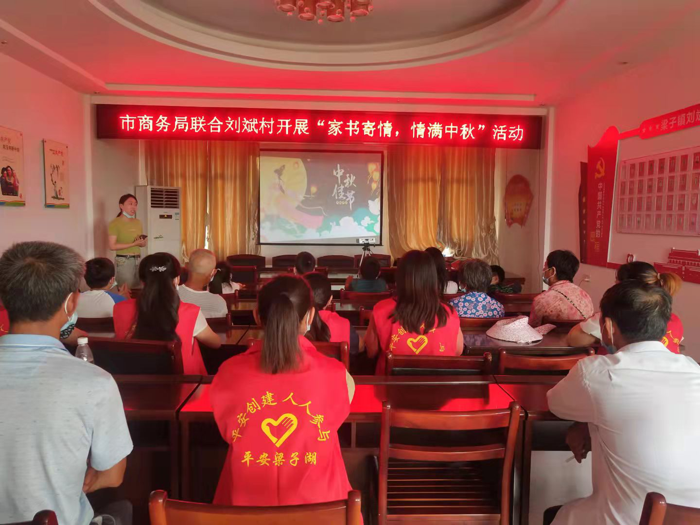 为关爱留守儿童,用温暖弥补无法团聚的亲情遗憾,用真情陪伴共度温暖有爱的中秋佳节,市商务局联合刘斌村开展“家书传情,情暖中秋”活动,通过观看动画、提问互动等形式,让村里留守儿童了解中国传统节日中秋。
