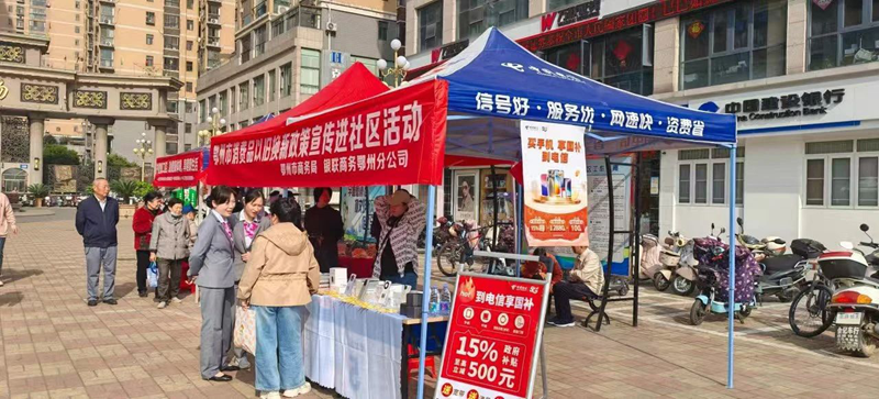 活动现场,鄂州市商务局与银联商务鄂州分公司的工作人员化身“政策宣传员”,穿梭于各个活动区域,为居民提供一对一、面对面的政策解读服务。他们不仅发放了详尽的宣传手册,还通过生动的案例分析,让居民直观感受到“以旧换新”补贴政策带来的实惠与便利。