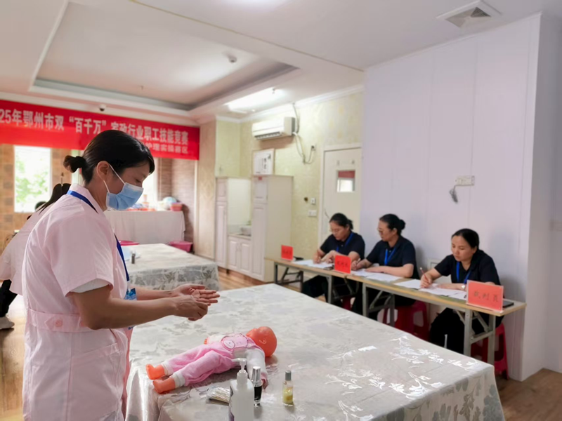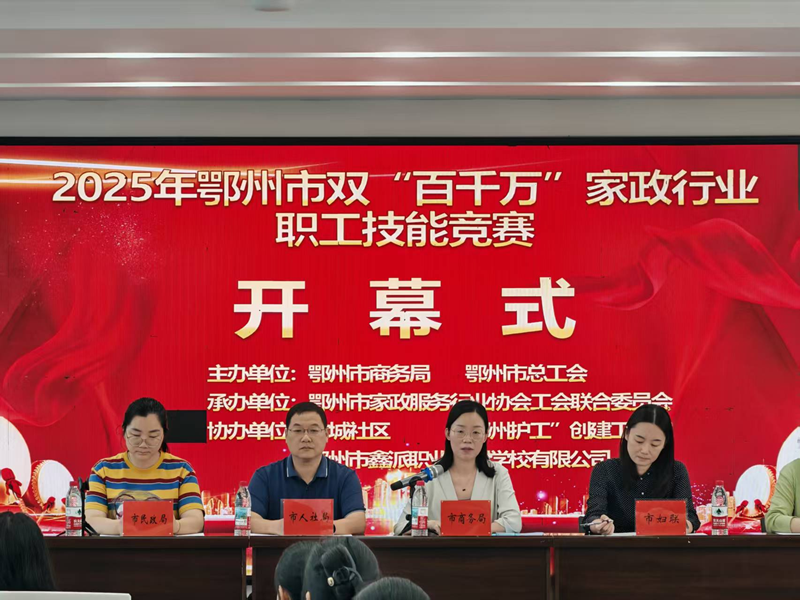 为全面推进家政服务业提质扩容,促进家政行业专业化、标准化、品牌化发展,由鄂州市商务局、鄂州市总工会主办,鄂州市家政服务行业协会工会联合委员会承办的2025年鄂州市双“百千万”家政行业职工技能竞赛于9月9日在鄂州市鑫派职业培训学校圆满落幕,市商务局副局长杨春秀出席活动并致辞。