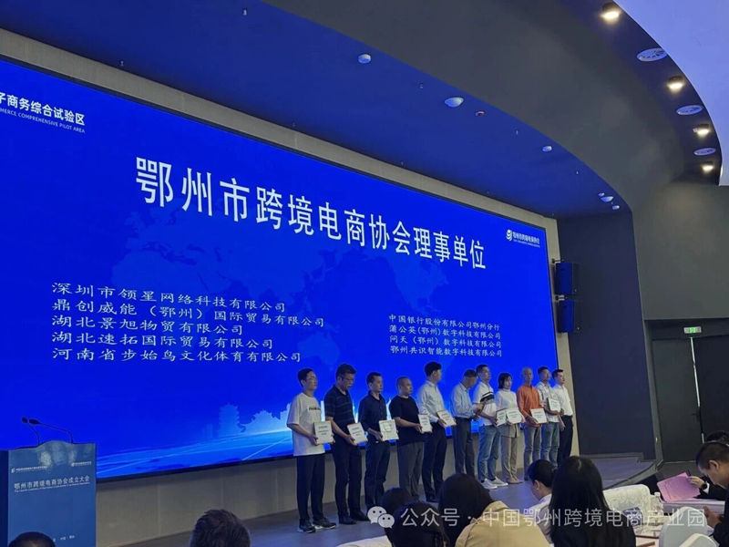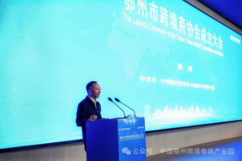 2025年9月25日,鄂州市跨境电商协会成立大会在中国(鄂州)跨境电商产业园隆重举行。中国服务贸易协会副会长兼秘书长仲泽宇、鄂州市委常委、常务副市长张权、湖北省电子商务行业协会会长闫顺山等领导出席本次活动。
