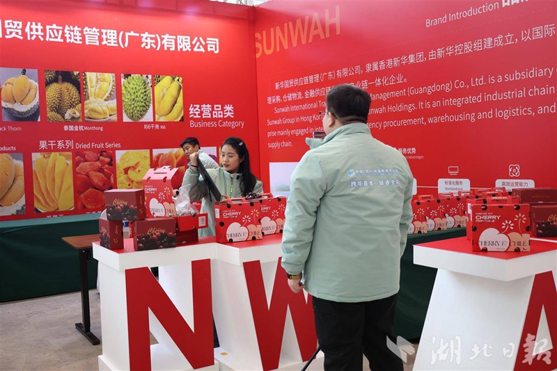 湖北(鄂州)跨境电商招商选品对接会现场,主播代货智利车厘子。