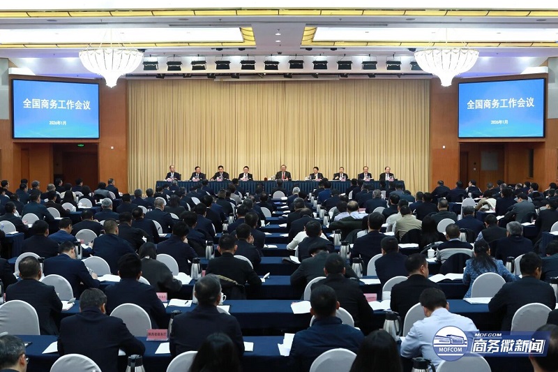 会议指出,2026年全国商务系统要自觉把思想和行动统一到党中央决策部署上来,学习好、运用好中央经济工作会议关于“五个必须”的规律性认识,重点做好八个方面工作:一是深入实施提振消费专项行动,打造“购在中国”品牌。加快培育服务消费新增长点,释放服务消费潜力。优化消费品以旧换新政策实施,推动商品消费扩容升级。打造国际化消费环境。发展数字消费、绿色消费、健康消费,激发下沉市场消费活力。二是健全现代市场和流通体系,推进全国统一大市场建设。加强制度保障,优化设施载体,推动零售业创新发展,完善现代商贸流通体系,深入推进试点城市建设。推进内外贸一体化。三是推动贸易创新发展,打响“出口中国”品牌。优化升级货物贸易,大力发展服务贸易,鼓励服务出口,创新发展数字贸易、绿色贸易,促进贸易投资一体化。四是塑造吸引外资新优势,擦亮“投资中国”品牌。有序扩大服务领域自主开放,提升投资促进水平,健全外资服务保障体系。五是对接国际高标准经贸规则,更大力度推进开放高地建设。全面深入实施自贸试验区提升战略,进一步提高海南自由贸易港贸易投资自由化便利化水平,提升开放平台质效,办好重点展会。六是有效实施对外投资管理,引导产供链合理有序跨境布局。健全海外综合服务体系,深化“一带一路”经贸合作,发展丝路电商,加强境外项目监管和风险防范。七是深化多双边经贸合作,推动多领域合作共赢。落实四大全球倡议,推进全球经济治理改革,积极开展多边经贸合作,扩大和丰富自贸区网络,做好双边经贸工作。八是防范化解风险,织密织牢开放安全网。完善涉外法治体系,完善出口管制和安全审查机制,健全贸易风险防控机制,维护产供链韧性和安全。