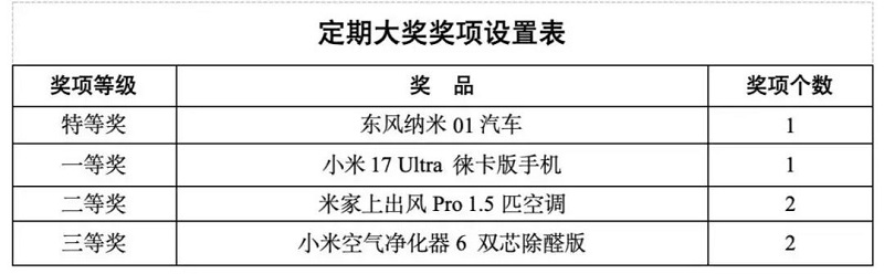三期大抽奖,奖品实实在在!每期参与即开即奖的合格数电发票自动进入定期大奖池。每期设有4个奖项等级,采取实物奖品方式。