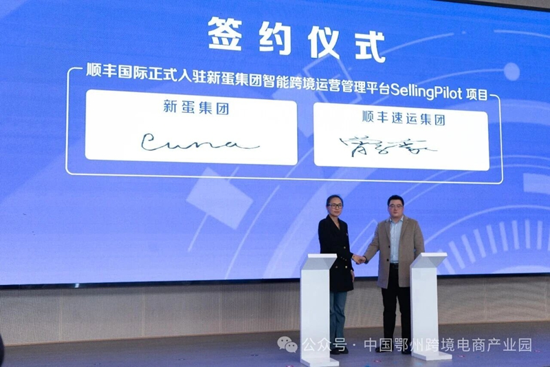 在合作签约环节,新蛋集团与顺丰速运就入驻新蛋集团智能跨境运营管理平台SellingPilot项目成功签署合作协议。