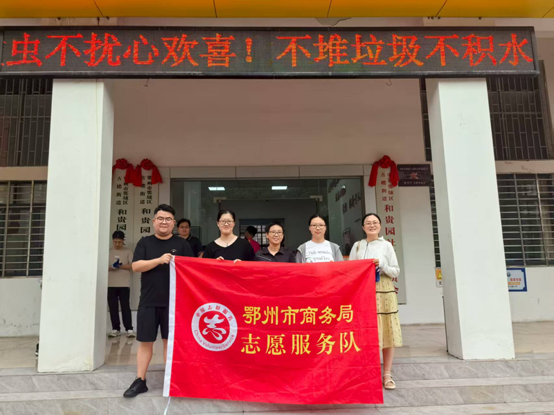 市商务局党员干部下沉和贵园社区开展翻盆倒罐、灭蚊消杀、入户宣传行动。